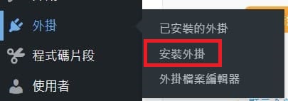 點選 wordpress 後台左側欄的外掛 → 安裝外掛
